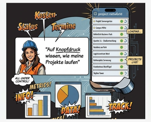 Mobile Projektarbeit ist im Bauwesen längst Standard. Projektleiter und Projektsteuerer benötigen jederzeit Zugriff auf Dokumente, Aufgaben und Termine – direkt auf der Baustelle oder unterwegs. Die projectnetworld App bündelt zentrale Funktionen des Bauprojektmanagements in einer mobilen Anwendung und reduziert Medienbrüche. So entstehen schnellere Entscheidungen, transparente Abläufe und effizientere Projekte.