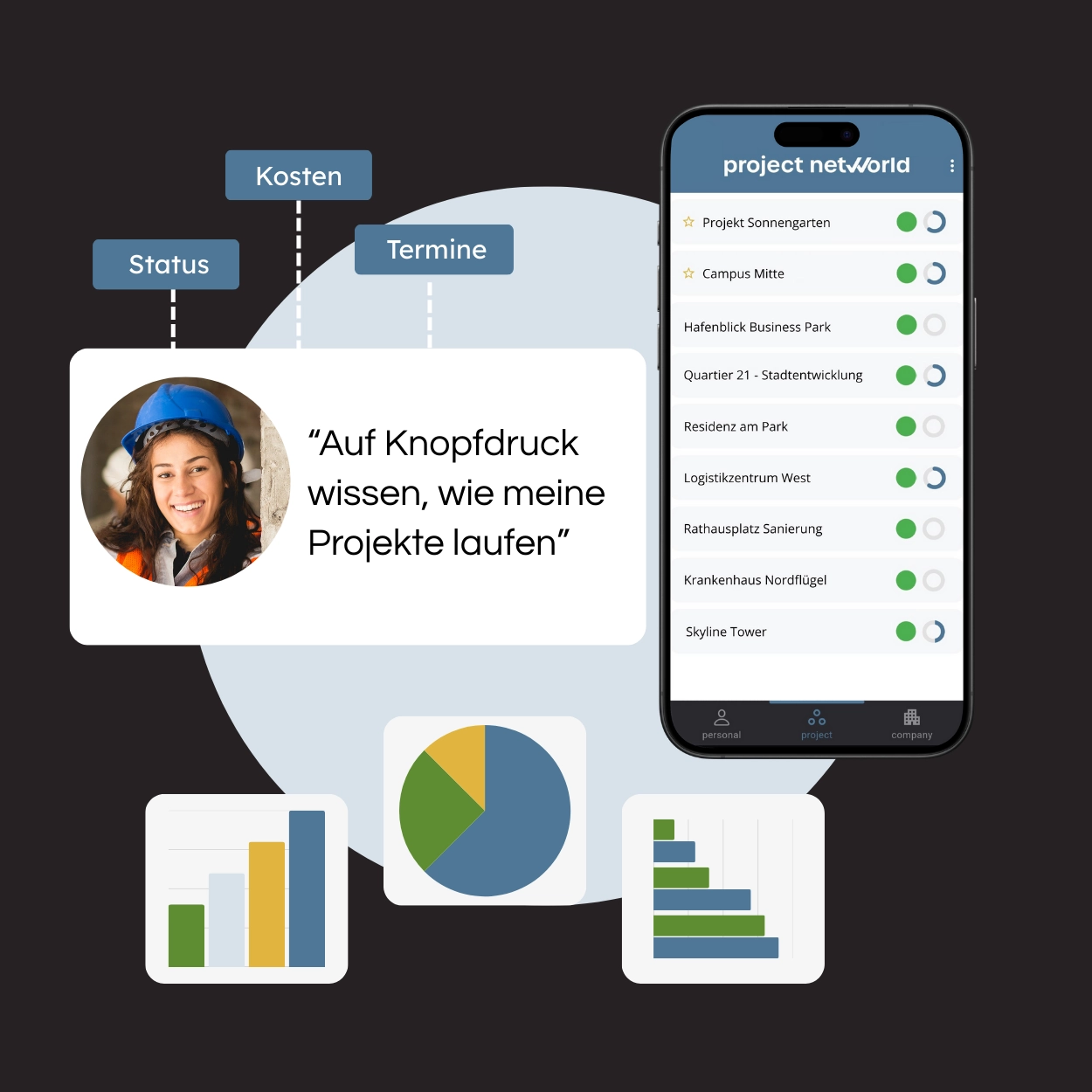 Bauprojekte sind komplex – egal ob Wohnbau, Infrastruktur oder Stadtentwicklung. Mit projectnetworld behalten Sie alles im Griff. Immobilienentwickler, Architekten, Kommunen oder Bauunternehmen – sie alle setzen auf unsere Plattform, um Projekte einfacher, sicherer und effizienter umzusetzen.